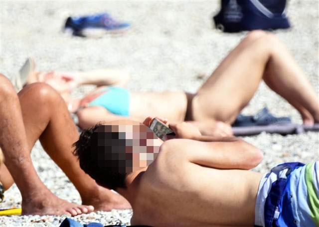 Havlusunu serip güneşlenen kadın turistin etrafını çeviren çok sayıda erkek, kadını göz hapsine almakla yetinmeyip cep telefonları ile fotoğraflarını çekti. Yabancı kadın turist rahatsız edici bakışlardan kurtulmak için denize girdi ancak burada da rahat edemeyince vazgeçip geri döndü.